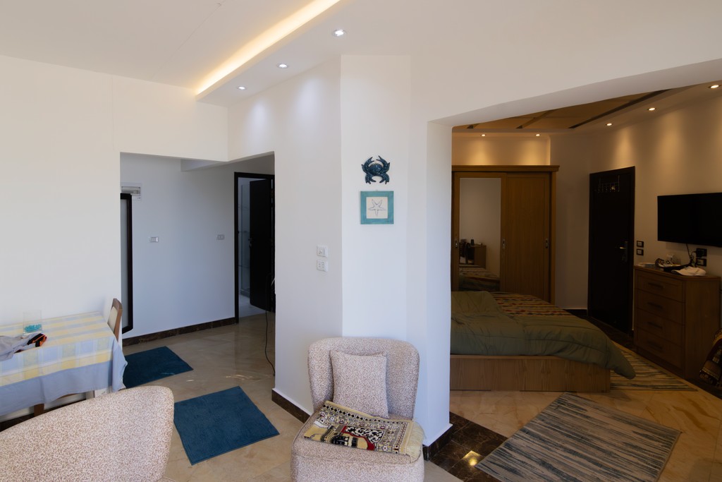 Die Wohnung liegt im Sama Beach Resort in Hurghada in direkter Strandlage. Der private Strandzugang ermöglicht schnellen Zugang zum Meer. Einkaufsmöglichkeiten, Cafés und Restaurants sind gut erreichbar. Die Lage eignet sich sowohl für Eigennutzer als auch für Ferienvermietung.