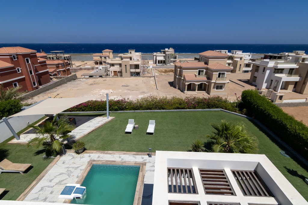 Die Villa liegt in der gefragten und bewachten Community Sahl Hasheesh an der Küste des Roten Meeres. Promenade, Strände, Cafés und Wassersportangebote sind gut erreichbar und die Infrastruktur der Master Community sorgt für ein gepflegtes und hochwertiges Umfeld. Hurghada City und der internationale Flughafen sind je nach Verkehr in etwa 20 bis 30 Minuten erreichbar.
