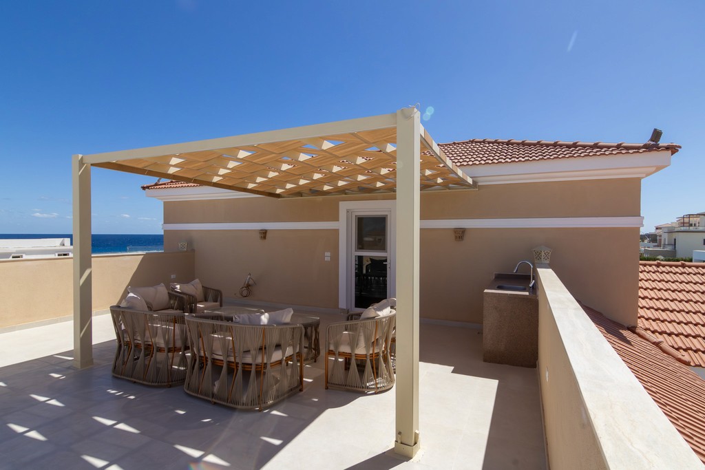 Die Villa ist vollständig eingerichtet und bietet eine hochwertige Ausstattung mit stimmiger Materialwahl und gepflegtem Zustand. Die Wohnbereiche sind großzügig geschnitten und wirken durch die Gestaltung und Beleuchtung besonders einladend. Die Küche präsentiert sich modern und funktional mit viel Arbeitsfläche und Stauraum. Mehrere Schlafbereiche bieten Privatsphäre für Familie und Gäste. Im Außenbereich ergänzt ein privater Pool das Gesamtbild. Dazu kommen weitläufige Terrassenflächen sowie ein überdachter Lounge und Essbereich, der sich perfekt für entspannte Stunden im Freien eignet.