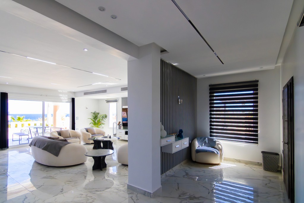Jamaran in Sahl Hasheesh steht für eine ruhige, gepflegte Wohnumgebung mit hochwertiger Nachbarschaft. Die Villa liegt als Eckgrundstück am Randbereich und hat nur einen direkten Nachbarn, was spürbar mehr Privatsphäre schafft. Durch die Ausrichtung mit Blick Richtung Meer wirkt die Lage offen und gleichzeitig geschützt. Ideal für alle, die Ruhe, Qualität und ein exklusives Umfeld miteinander verbinden möchten.